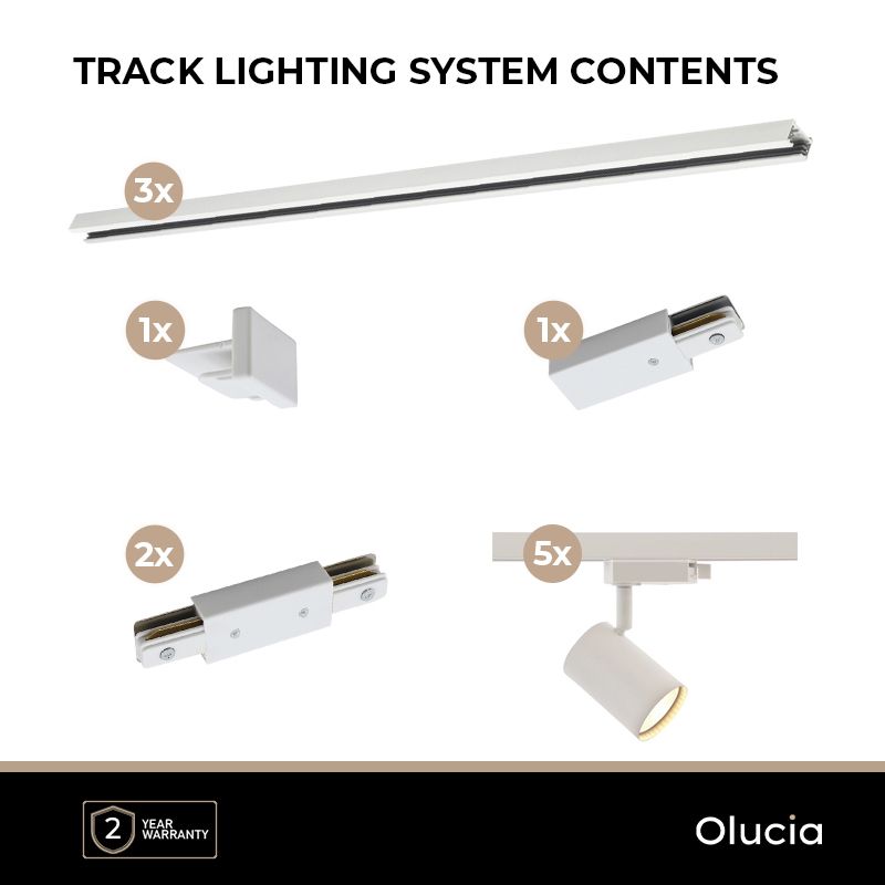 Produktinformation Max watt 25 Matningsspänning 220-240V Antal lampor 5 Typ av lamphållare GU10 Produktinformation Ljus ingår Nej Bredd i cm 5.5 Diameter i cm 5.5 Höjd i cm 15 Längd i cm 300 Dimbar Ja (ingår ej) Garanti 2 år IP-klassificering IP20 Färg Vit Material Metall Stil Modern Artikelnummer Q79844 - Hem