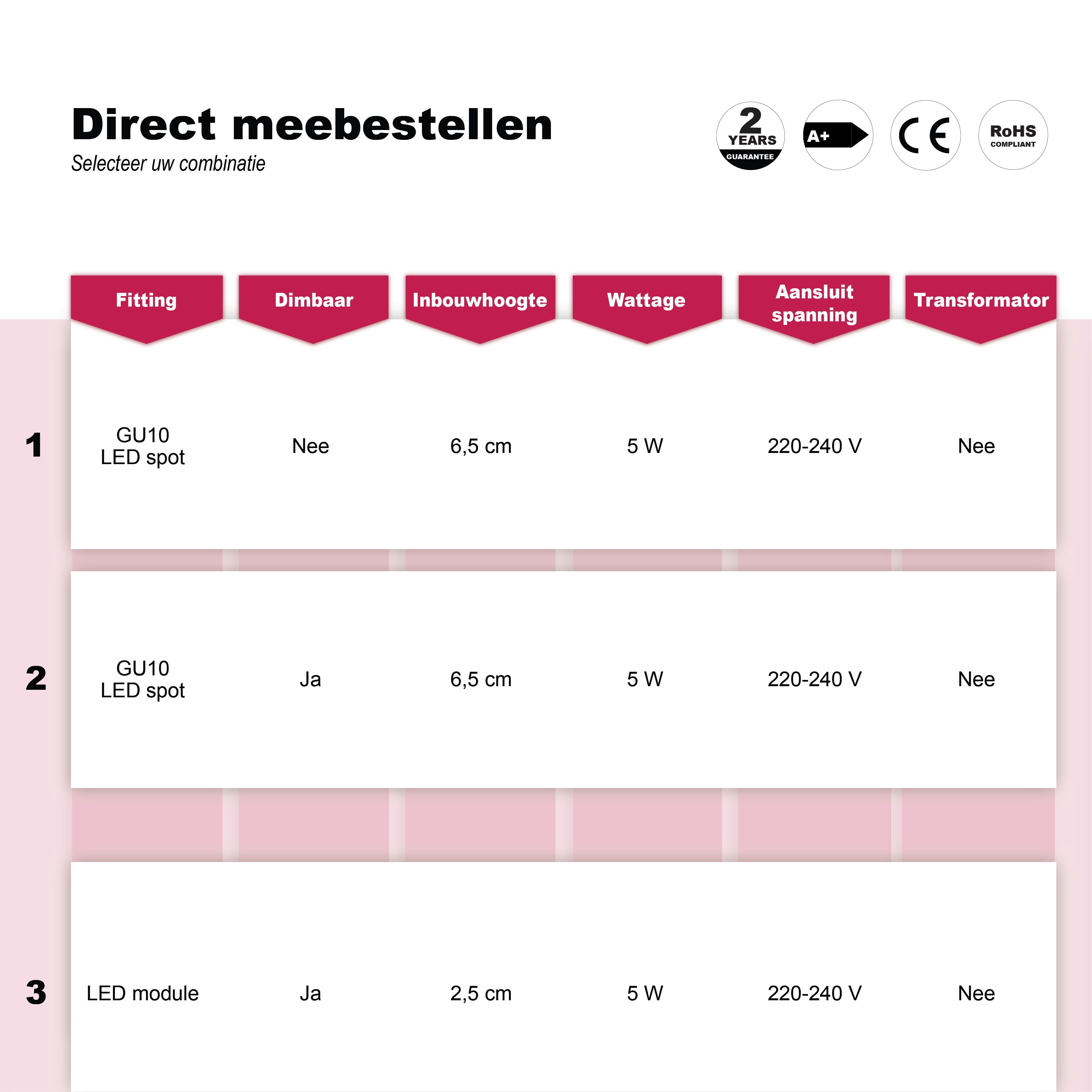 - GU10 / GU5.3, dimbar
