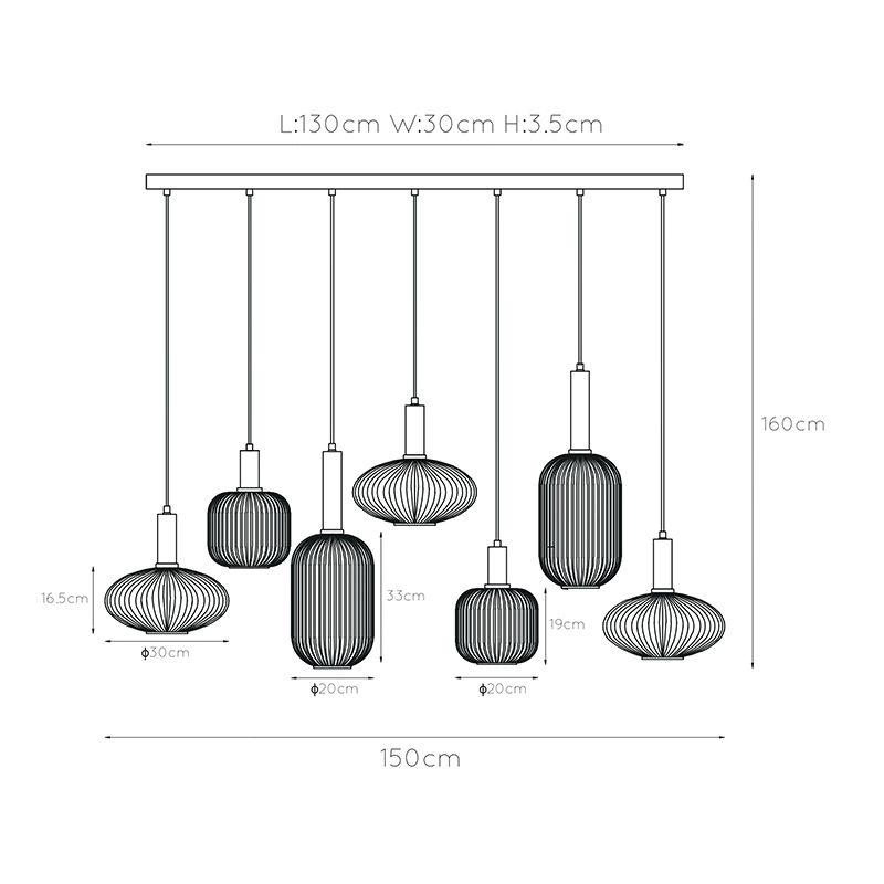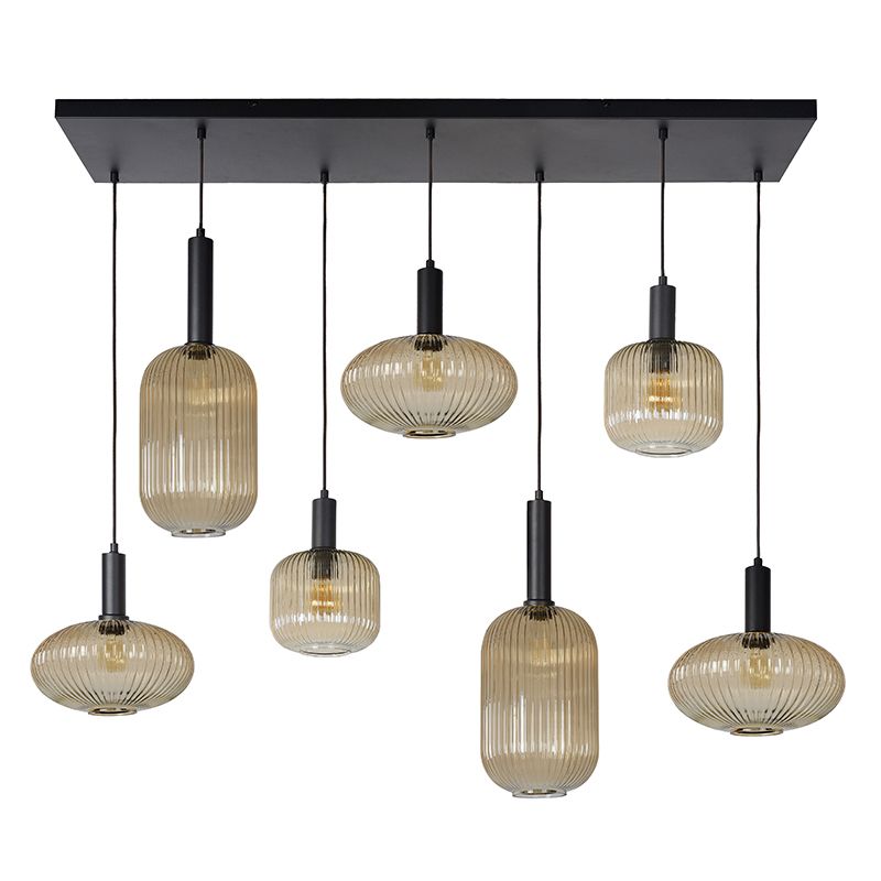 Produktinformation Max watt 40 Matningsspänning 220-240V Antal lampor 7 Typ av lamphållare E27 Produktinformation Ljus ingår Nej Bredd i cm 30 Vikt i kg 11.5 Höjd i cm 150 Kabellängd 130 Längd i cm 130 Dimbar Ja (ingår ej) Garanti 2 år IP-klassificering IP20 Färg Svart, Bärnsten Material Metall, Glas Område Vardagsrum, Sovrum, Hall Stil Retro Artikelnummer Q34182