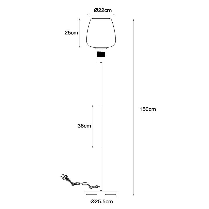 Denna retro golvlampa har en strömbrytare på sladden med vilken du enkelt kan tända och släcka lampan.