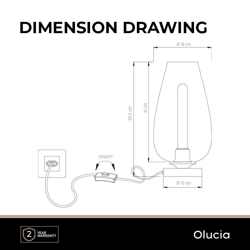 Denna design bordslampa har en strömbrytare på sladden med vilken du enkelt kan tända och släcka lampan.