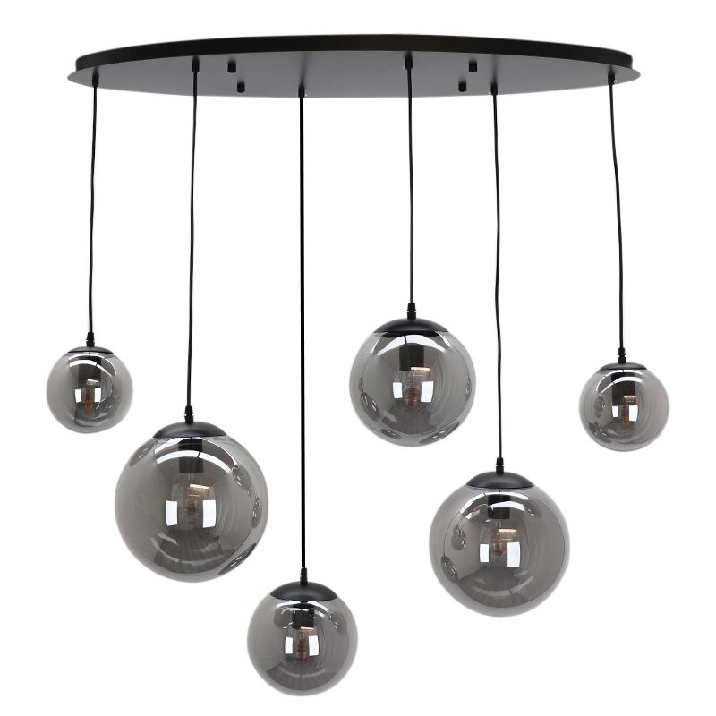 Produktinformation Max watt 60 Matningsspänning 220-240V Antal lampor 6 Typ av lamphållare E27 Produktinformation Ljus ingår Nej Bredd i cm 105 Bredd bas/monteringsplatta 35 Höjd i cm 120 Höjd botten/monteringsplatta 3 Längd i cm 42.5 Längd sockel/monteringsplatta 100 Dimbar Ja (ingår ej) Garanti 2 år IP-klassificering IP20 Färg Grå, Svart Material Metall, Glas Stil Design Artikelnummer Q79902 - Hem