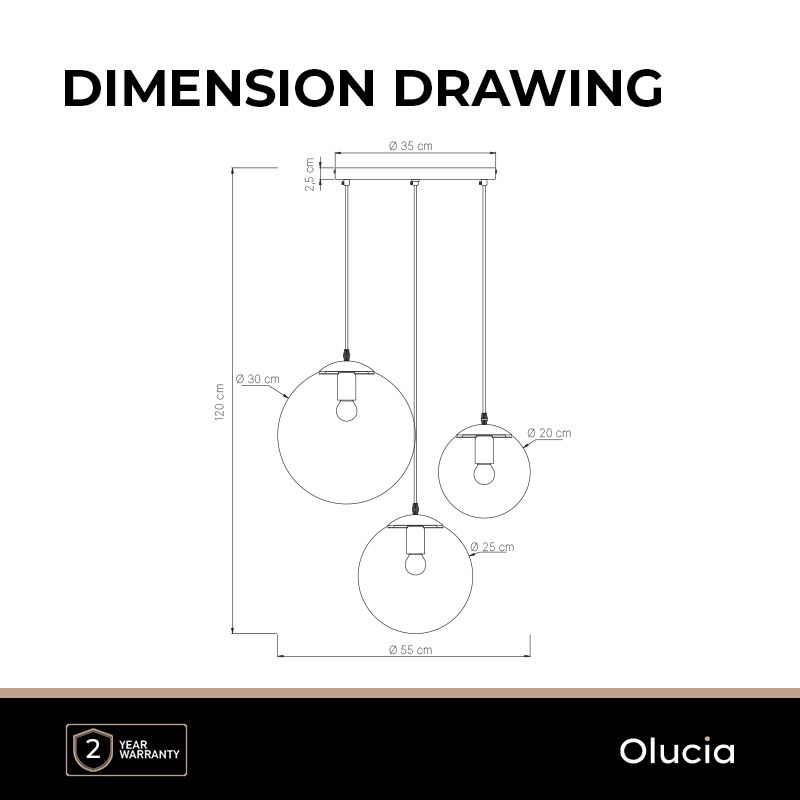 • 3 x E27 lamphållere (exkl. ljuskällor)