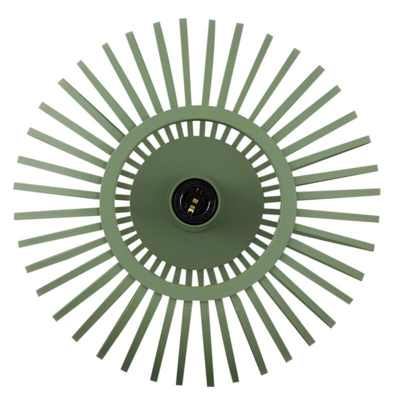 Den industriell plafond Lieve är grön och tillverkad av metall. Denna gröna plafond levereras utan matchande ljuskälla. För denna lampa krävs en ljuskälla med E27 lamphållare och ljuskällans maximala watt får inte överstiga 40 watt.