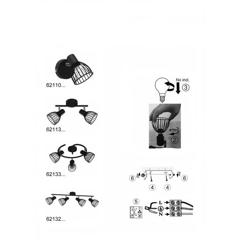 • 3 x E14 lamphållere (exkl. ljuskällor)