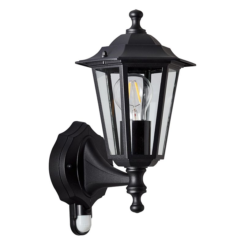 Denna klassiska utomhus vägglampa med rörelsesensor svart, Rayn, har följande egenskaper: