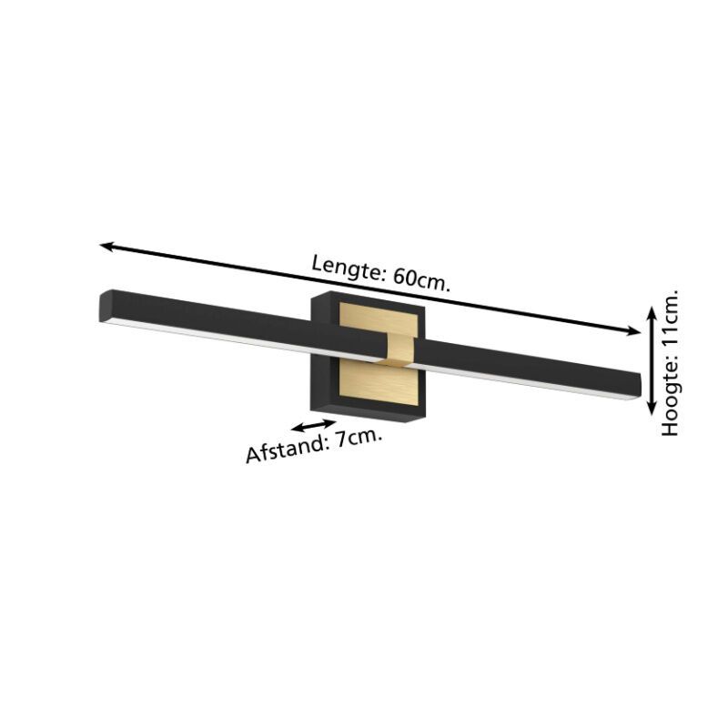 Produktinformation Max watt 11 Matningsspänning 220-240V Antal lampor 1 Antal lumen 1165 Produktinformation Ljus färg 3000K (varmvitt) Typ av lamphållare LED integrerad Typ av ljuskälla ingår Integrerad LED Förväntade brinntimmar 20000 Ljus ingår Ja, integrerad Vikt i kg 0.691 Höjd i cm 11 Längd i cm 60 Dimbar Nej Garanti 2 år IP-klassificering IP44 (vattentålig) Färg Mässing, Svart Material Plast, Stål Område Badrum Stil Modern Artikelnummer Q52077 - Hem