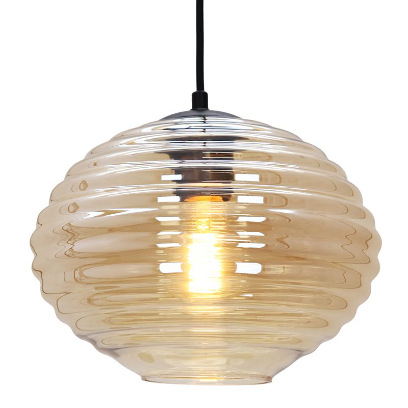 Den moderna fönsterlampa Caia är bärnstensfärgad till färgen och gjord av glas. Denna bärnstensfärgade fönsterlampa levereras utan matchande ljuskällor. Denna lampa bör innehålla 6 ljuskällor med E27 beslag. Ljuskällornas maximala watt bör inte överstiga 7 watt per lampa.
