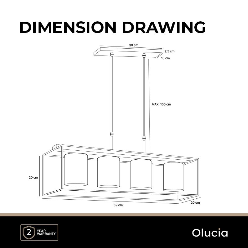 Produktinformation Max watt 40 Matningsspänning 220-240V Antal lampor 4 Typ av lamphållare E27 Produktinformation Ljus ingår Nej Bredd i cm 20 Bredd bas/monteringsplatta 10 Höjd i cm 130 Höjd botten/monteringsplatta 2.5 Längd i cm 90 Längd sockel/monteringsplatta 30 Dimbar Ja (ingår ej) Garanti 2 år IP-klassificering IP20 Färg Svart Material Aluminium, Glas Stil Modern Artikelnummer Q51913 - Hem