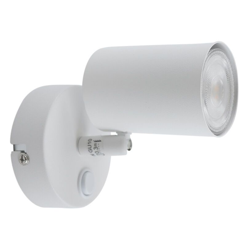 Den moderna väggspotlight Elena är vit till färgen och tillverkad av metall. Denna vita väggspotlight levereras utan matchande ljuskälla. I denna lampa, en ljuskälla med GU10 lamphållare och ljuskällans maximala watt får inte överstiga 35 watt.