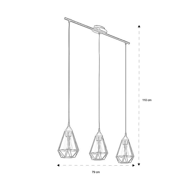 Produktinformation Max watt 60 Matningsspänning 220-240V Antal lampor 3 Typ av lamphållare E27 Produktinformation Ljus ingår Nej Bredd i cm 17.5 Vikt i kg 2.2 Höjd i cm 110 Längd i cm 79 Dimbar Ja (ingår ej) Garanti 2 år IP-klassificering IP20 Färg Svart Material Metall Med strömbrytare Nej Område Matbord Stil Industri Artikelnummer Q15366